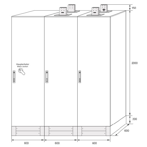 Dimensions (W*H*D): 1800 x 2200(+150) x 600 mm
